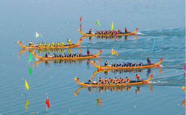 3、劃龍舟是端午節(jié)的一項(xiàng)重要活動,古時盛行于吳、越、楚,現(xiàn)在我國南方沿海一帶十分流行。傳出國外后,深受各國人民的喜愛并形成了國際比賽。劃龍舟歷史悠久,是多人集體劃槳竟賽。龍舟競渡分為請龍、龍神、游龍和收龍等幾個版塊。龍舟竟渡前一般都要舉行隆重的祭祀儀式,先要請龍、祭神。如廣東龍舟,在端午前要擇吉日從水下起出,祭過神后,安上龍頭、龍尾,再準(zhǔn)備競渡。閩、臺則往媽祖廟祭拜。在過去,人們祭祀龍神時氣氛很嚴(yán)肅,多祈求福佑、風(fēng)調(diào)雨順、去邪祟、災(zāi)異、事事如意。